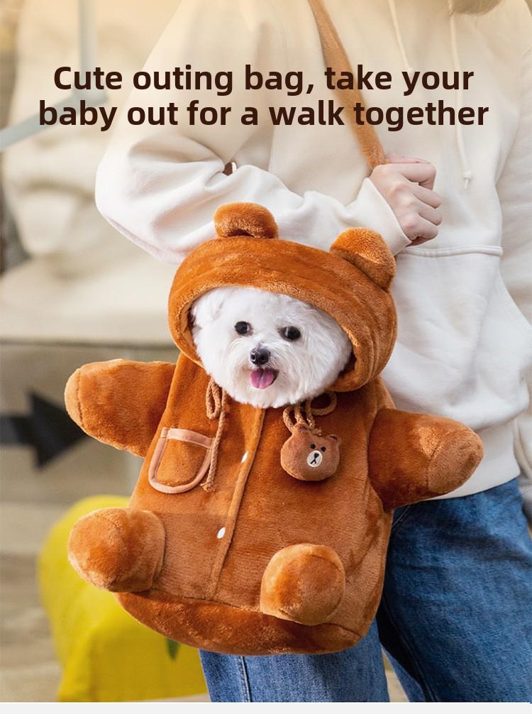 Dog Bag Autumn and Winter Portable Outing Bag Warm Windproof Bear Cute Cute Shoulder Bag Cat Bag Pet Crossbody Bag Dog Backpack